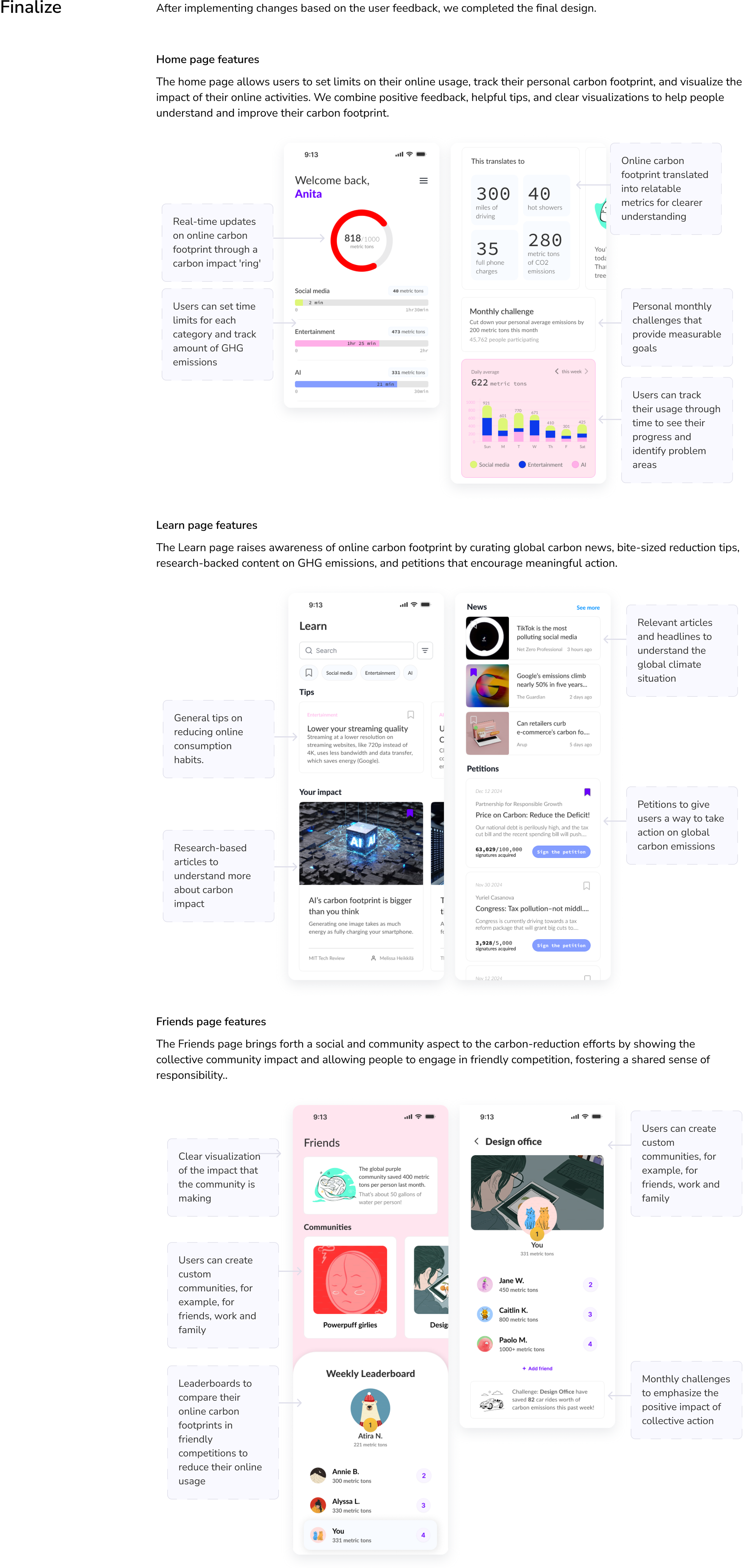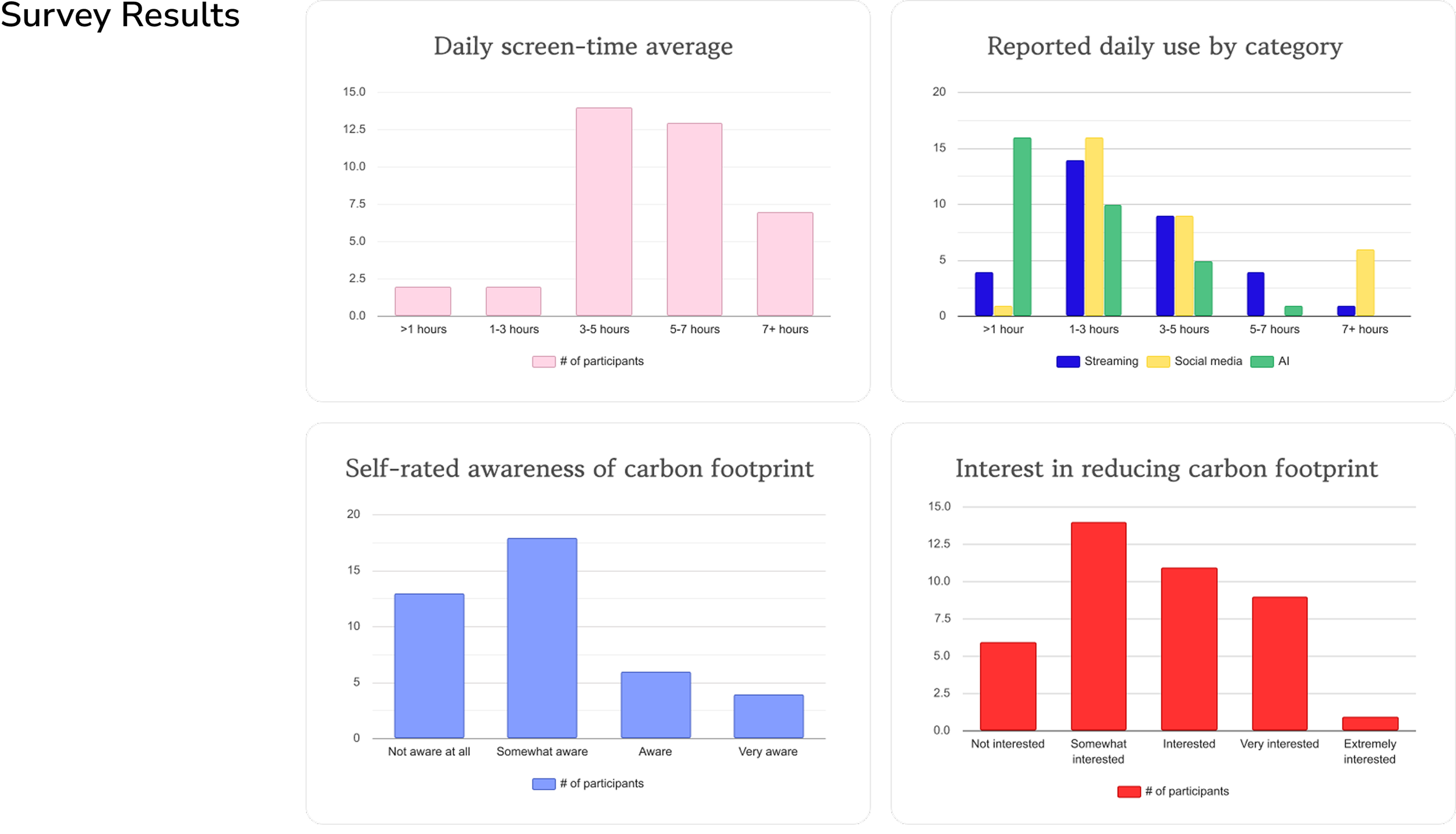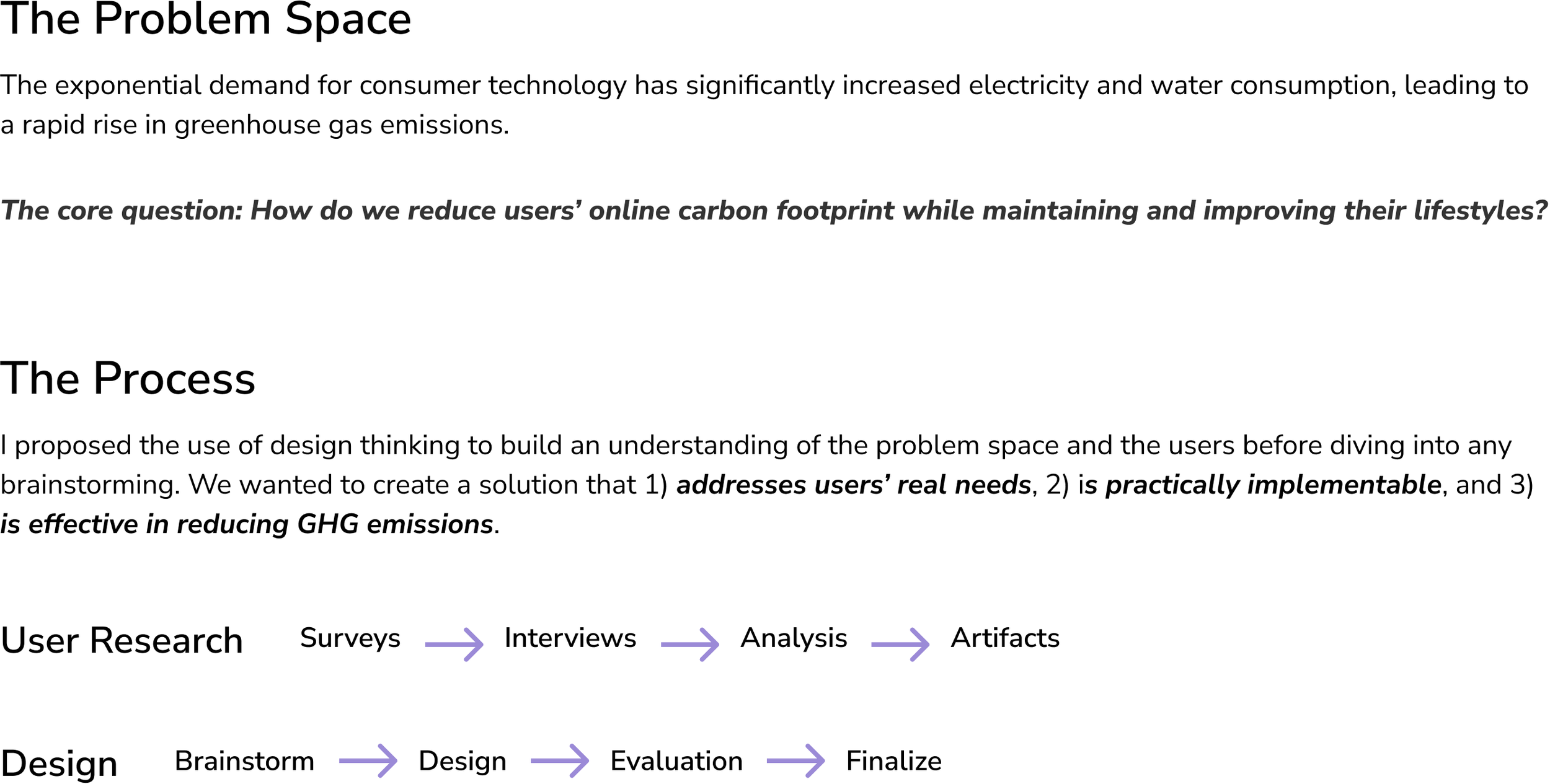 Our project aimed to address online sustainability by encouraging people to reduce their online carbon footprint through community engagement, awareness, and easy-to-understand carbon footprint tracking.